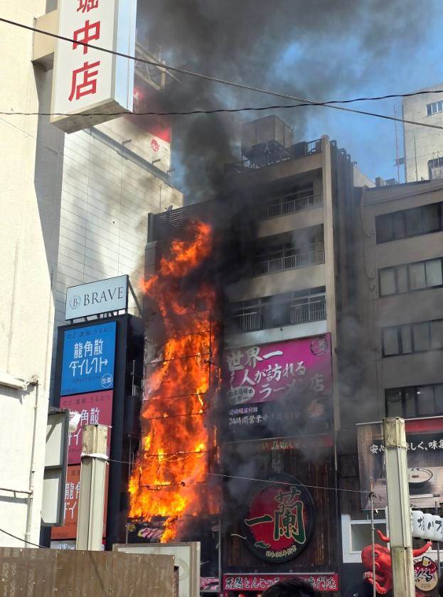 火警發生在大阪中央區宗右衛門町一帶,起火地點鄰近知名地標「唐吉訶德道頓堀店」,疑似是一蘭拉麵本館旁邊的七層樓建築物。消防單位緊急出動62輛消防車、1架直升機及1艘消防艇投入救援,歷經三小時搶救,火勢終于在當地時間中午12時56分獲得控制。