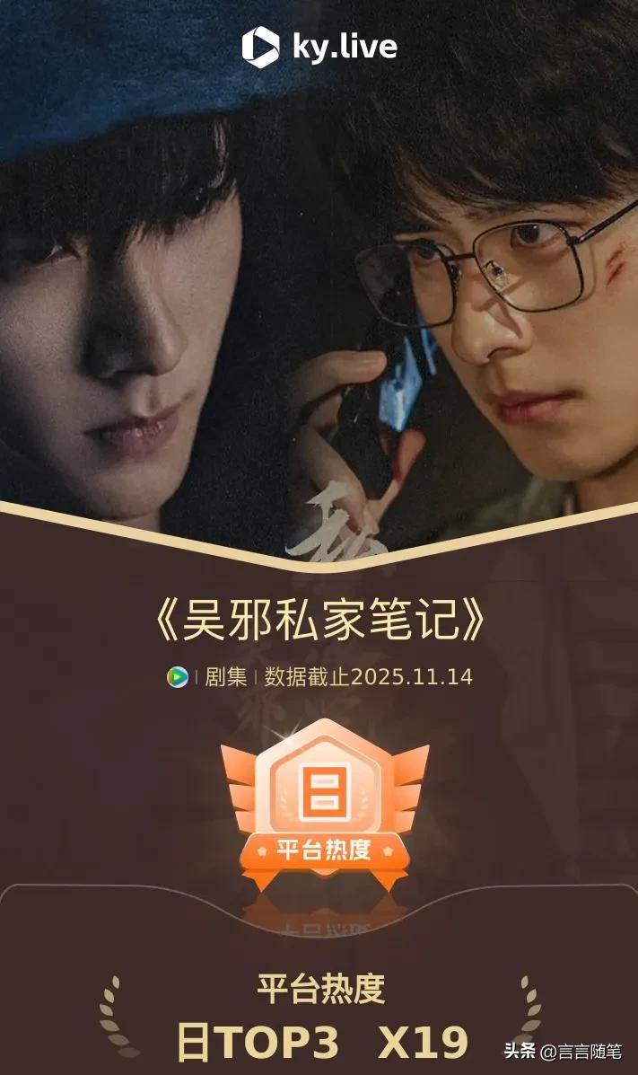2025年代表作:《赴山海》愛奇藝、騰訊影片雙爆,雲合正片有效播放佔有率高達29%,9月更是強勢包攬貓眼劇集有效播放總榜、集均有效播放總榜雙榜首,豆瓣評分5.9。《吳邪私家筆記》上線騰訊影片兩小時內熱度突破 22000,次日達 24000,連續19天獲平臺熱播TOP3,豆瓣評分6.5。