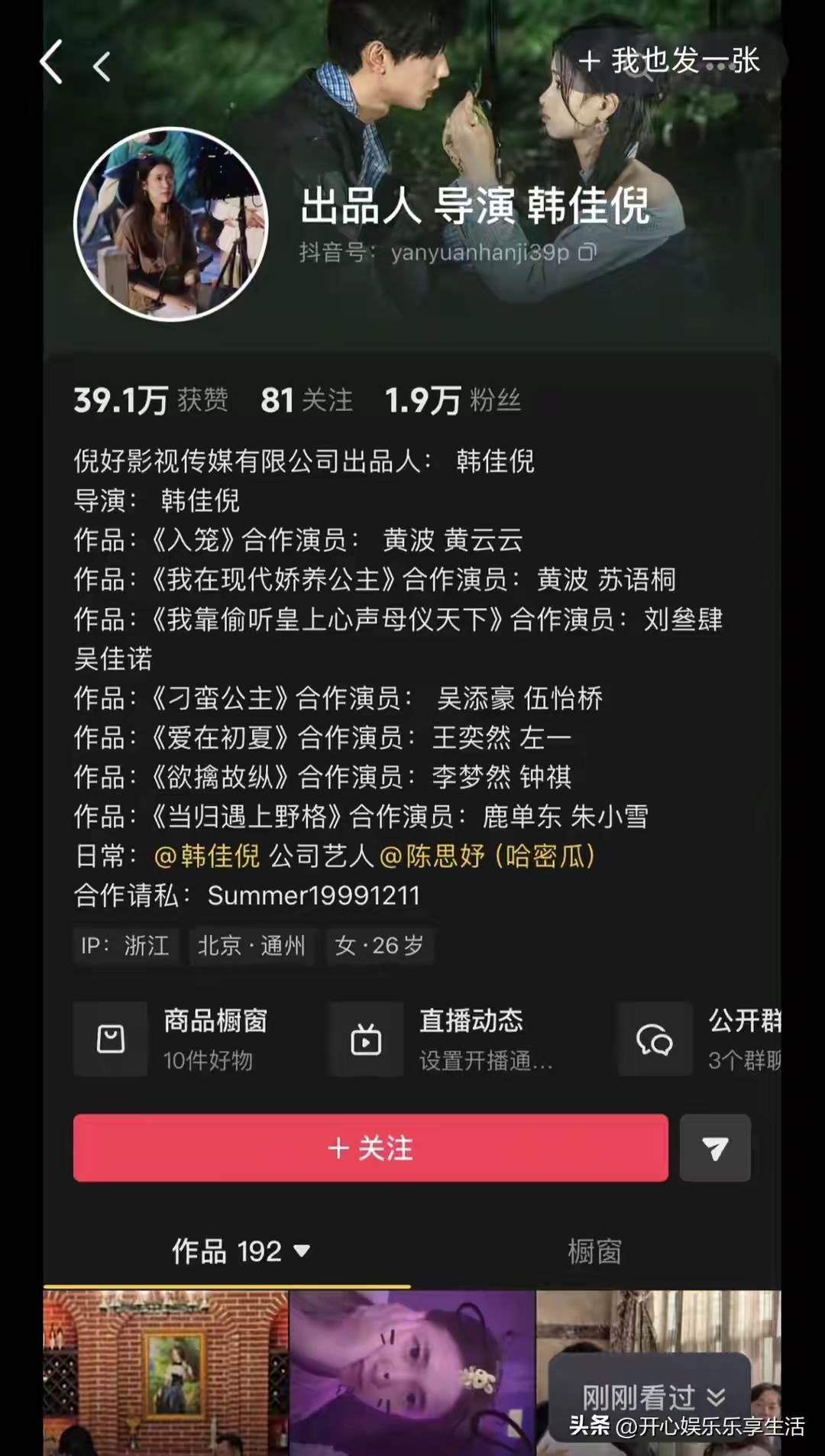 3月26日凌晨,短劇女導演韓佳妮直接開直播實名控訴鹿單東,當場放出畫面,指控他不僅要帶走自己的閨蜜回家睡覺,爭執中還動手打人,直播間瞬間炸鍋。