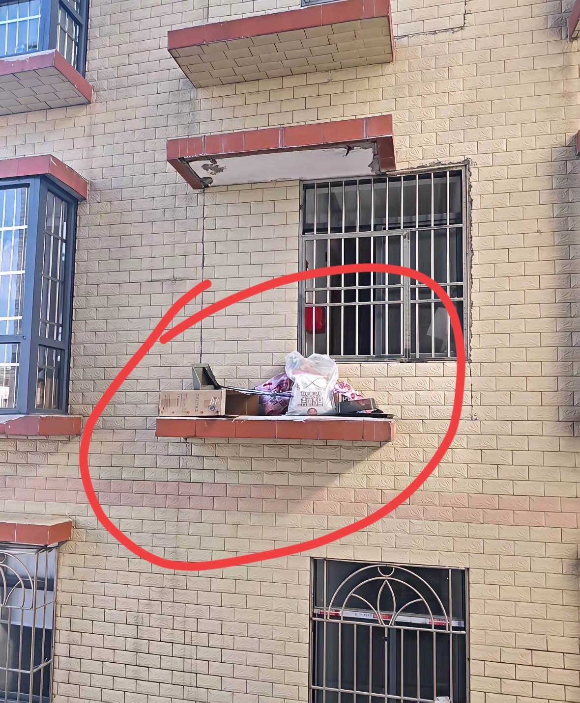 呢個喺網上瘋傳嘅畫面顯示,喺廣東某城市嘅一棟舊式居民樓,四樓單位嘅空調平臺堆滿咗紙箱、膠袋、同埋各種唔知咩嘅雜物,搖搖欲墜咁掛喺半空。有街坊經過抬頭一睇,即刻嚇到心都離一離,話如果打風落雨,啲雜物隨時會飛落街,真係隨時會出人命!
