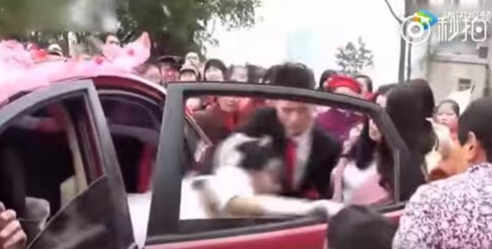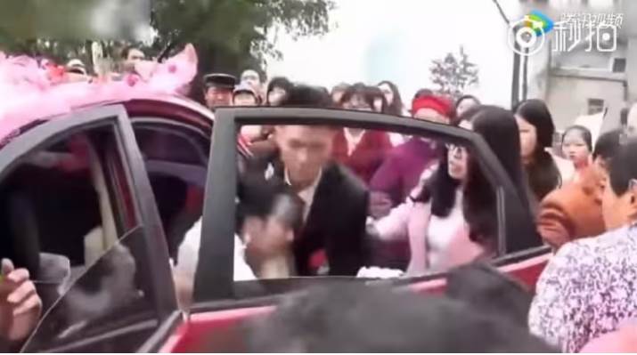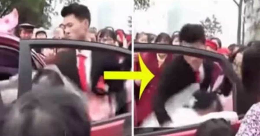 原來是禮車到了新郎家中後,新娘打死都不肯下來,甚至還向新郎要了8800元人民幣(約3萬9000元台幣)的下車紅包,結果新郎當場大發雷霆,不但把新娘拖出禮車,還硬是賞了新娘一記耳光,讓圍觀的親友們都嚇傻了。