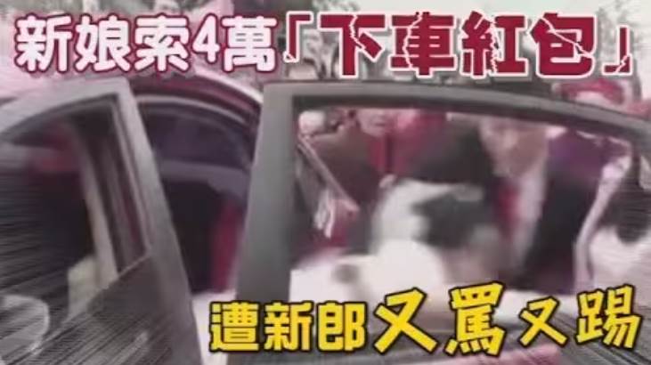 據了解,新郎所準備的聘金全被丈母娘挪用為新娘弟弟討媳婦所用,搞得新郎超不爽,原先看在大喜之日想忍住怒火,但娘家卻貪心地想利用新娘再討個下車紅包,結果新郎再也忍不住,硬是把新娘強拉下車,還順手甩了她一巴掌並罵道:「叫你要錢?