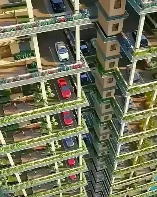 據了解,這位女生在設計中借鑑了「立體交通+建築一體化」的思路。與傳統小區將車庫設于地下或地面集中區域不同,她的方案將停車空間與住戶單元進行垂直整合,透過智慧升降系統和樓層對接技術,讓車輛可以停靠在每家每戶對應的「私家車位層」,居民下樓後無需步行至車庫,直接在家門口層取車。