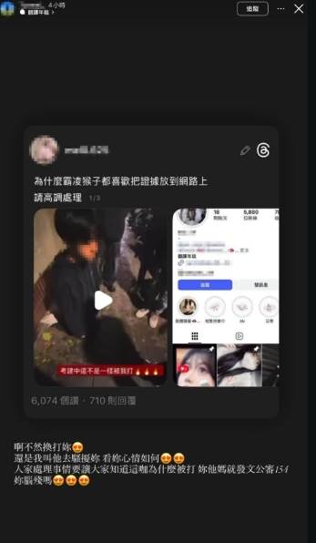 囂張態度再次激怒眾人。面對輿論砲轟,涉案少年稍早在限動及貼文發表道歉宣告,宣稱自己「一時用詞不當」、「只是想幫朋友講話」,並強調並未親自動手施暴,只是網路留言失當才導致誤會。