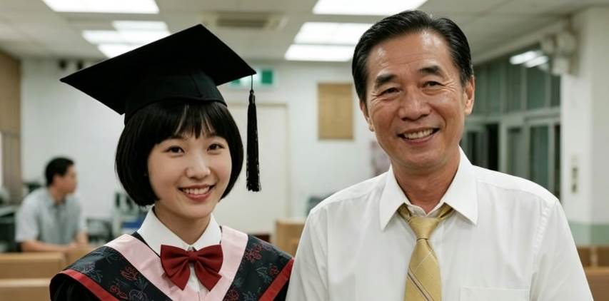 然而,當小女孩——如今的博士學歷者小琳終于出現在粥店門口時,阿佳怎麼也沒想到會出現這樣戲劇性的開場。她穿著一身素雅的裙子,揹著沉甸甸的雙肩包,好看的眼鏡掩蓋了她雙眼的波動,但當她跪下,喊出那一聲「阿爸」,街坊鄰居頓時圍了上來。阿佳手中的湯勺掉在地上,已經說不出半句話。