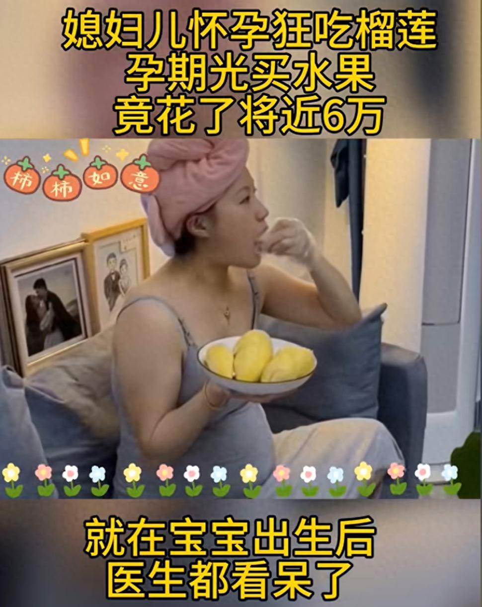 當然也有一些家底比較豐厚的家庭,想吃什麼就會吃什麼,一個孕媽媽在懷孕的時候,突然對榴蓮瘋狂的追捧,幾乎每天都要吃榴蓮,而且一吃就是吃兩房,甚至是三房,吃得津津有味的,在整個孕期光榴蓮之類的水果就買了6萬塊錢。