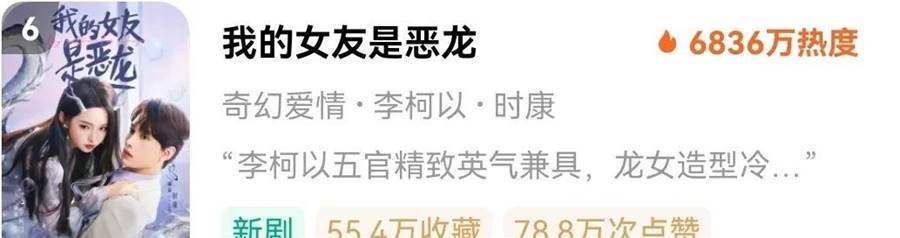 2月1日李柯以新劇《我的女友是惡龍》在紅果短劇上線,熱度僅為6836萬,連紅果熱播榜前五都沒有擠進去。