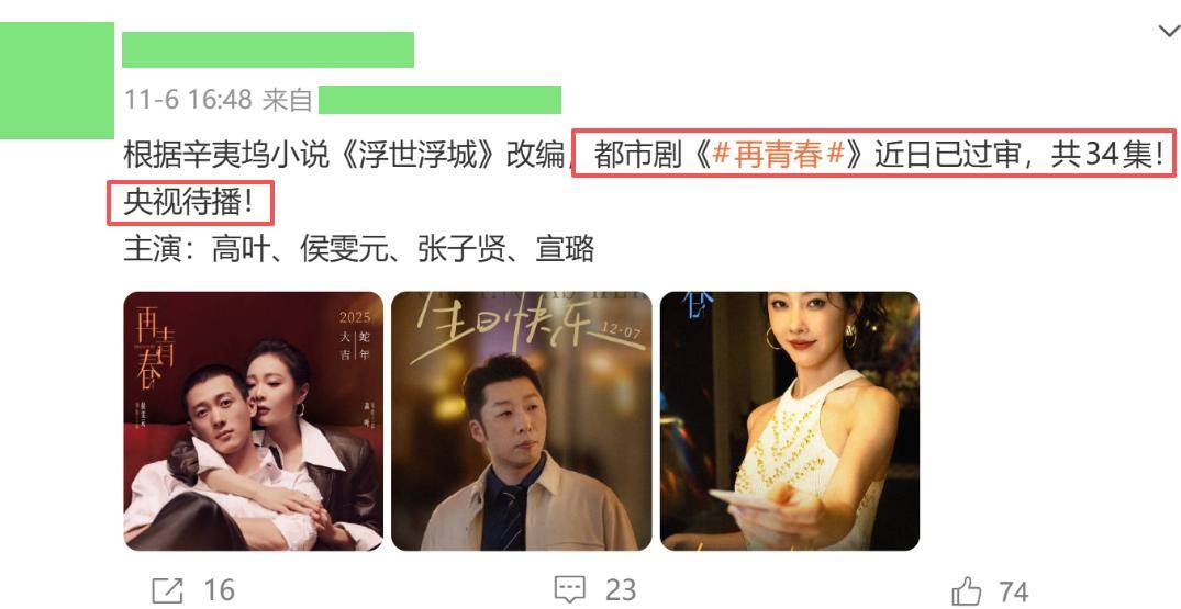 眼下《四喜》正在熱播,又有一部都市劇大劇傳來新訊息。