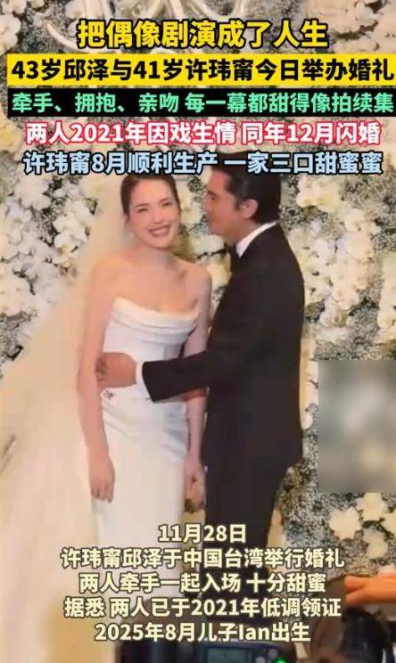 今年11月28日,台灣娛樂圈被一場低調的婚禮溫柔刷屏。