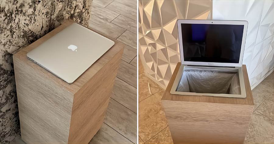 這個長得像MacBook的垃圾桶,或許正在默默傳達一個訊息:在物質與精神之間,我們永遠有選擇如何定義價值的自由。