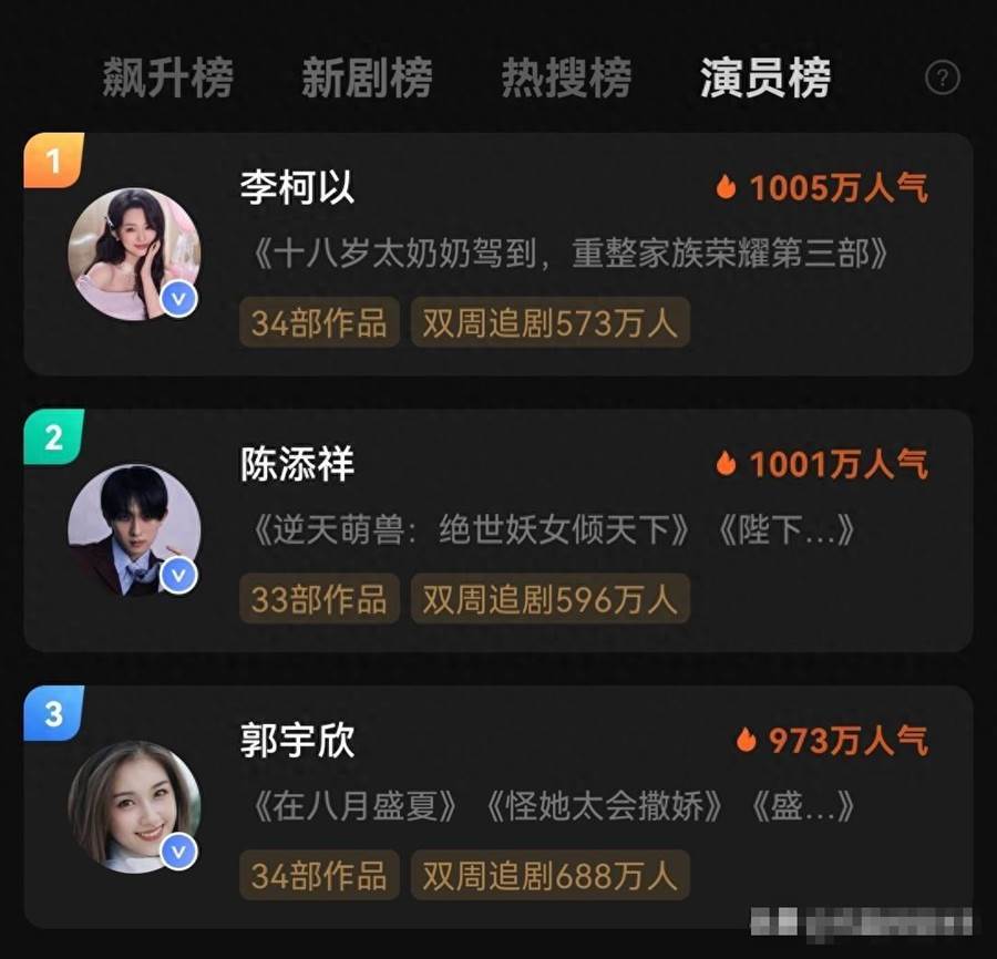 在短劇圈里,演員的熱度向來變化無常,今日女演員熱度又來一次大洗牌,李柯以僅僅憑借一部短劇就反超了位居榜首多日的郭宇欣,一夜之間登上熱度榜第一!