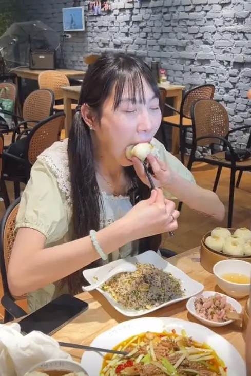 晚上十點,吳半飽的直播間準時亮起。鏡頭前,她扎著馬尾,笑容甜美,面前擺著四人份的火鍋、兩整隻炸雞、三大杯奶茶。兩小時內,她談笑風生,將食物一掃而空。彈幕裡一片驚歎:「大胃王!」「怎麼吃都不胖!」