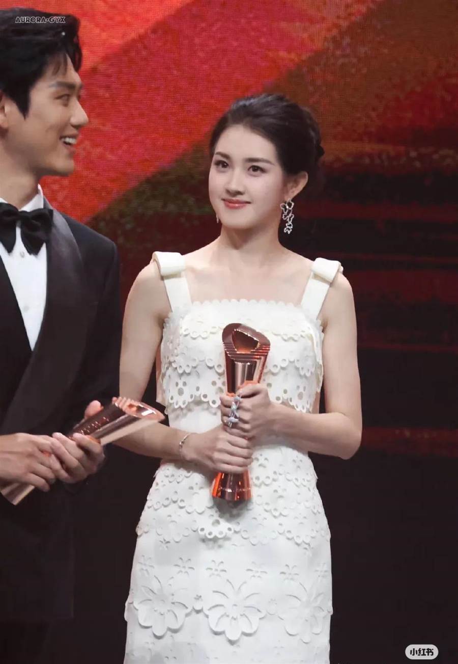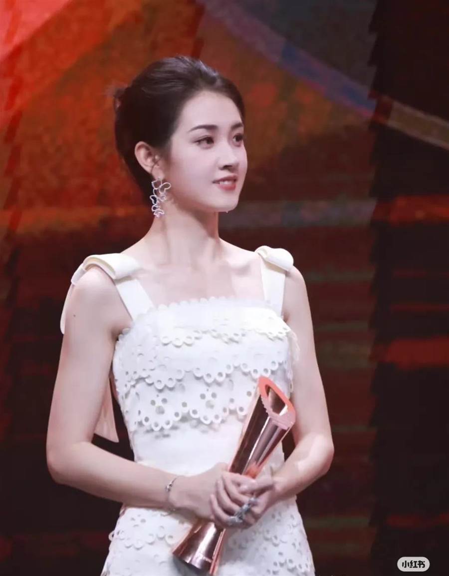 而頒獎時候又換上一件淡色系長裙,同樣驚豔全場,站在臺上就是標準的「漂亮女星」配置,氣質與顏值都線上,粉絲尖叫聲就沒停過。