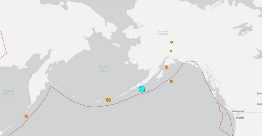 阿拉斯加外海發生地震。(圖/翻攝自美國地質局usgs)