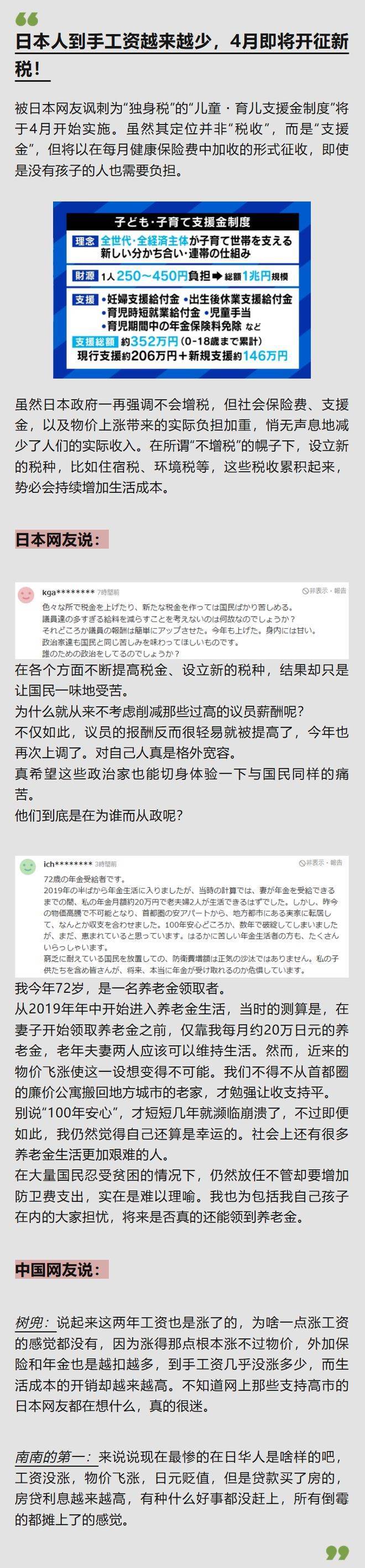 日本政府推出嘅「兒童・育兒支援金制度」將于4月實施,雖然名義上係「支援金」,唔係稅項,但就會透過每月健康保險費額外加收,每人每月要多付250至450日圓(約港幣13至24元/新台幣52至96元),預計整體規模高達1兆日圓。