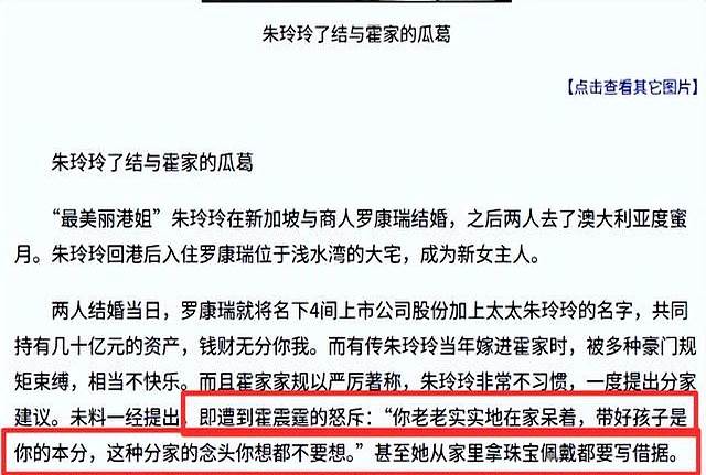 霍英東定下的家規寫滿三十八頁,其中一條寫著:外嫁女不得持有家族基金份額。朱玲玲生了啟剛、啟山、啟仁,仍舊被歸為外嫁女。2000年她想帶小兒子去英國看夏令營,申請表遞上去,霍震霆只回一句:孩子留在香港,是你的工作。那次之後,她一個人跑去銅鑼灣電影院坐了一下午,散場誰也沒找。
