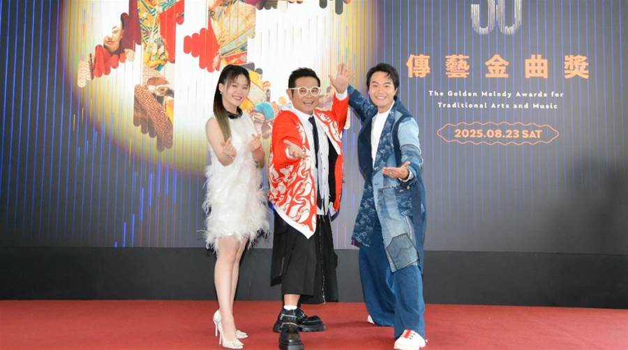 許效舜(中)、楊小黎(左)、柯大堡出席傳藝金曲記者會。(圖/黃盈容攝)