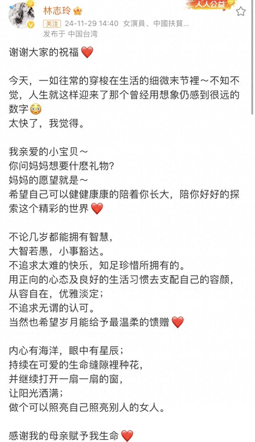 根據IP可以得知,當下林志玲還在台居住,她感謝大家的祝福,對于這個數字(年齡),真的是太快了。