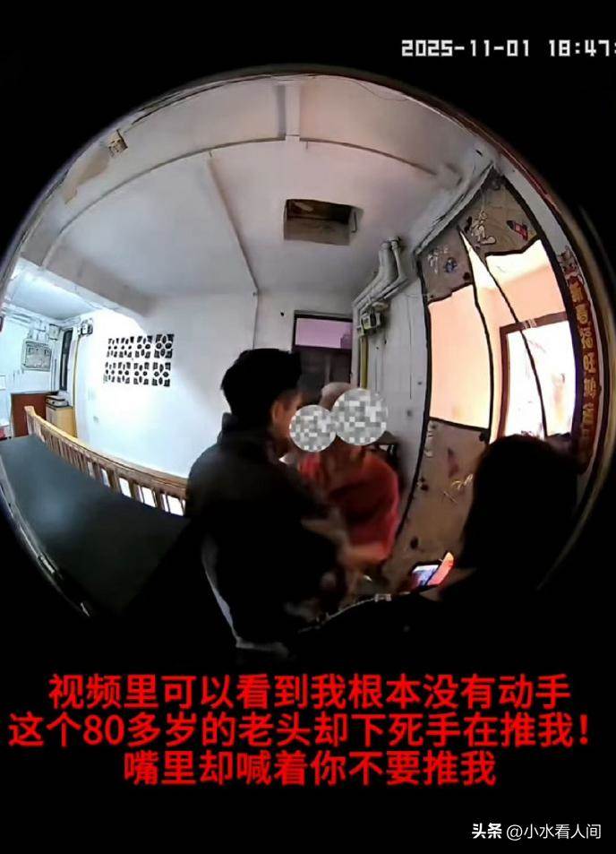 聽到這句話後,屋子裡立刻就衝出來一個80多歲的老人,一上來就開始推女子,並且大聲喊「你不要推我」。