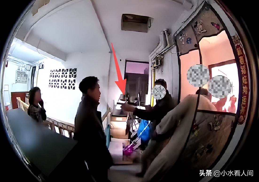 隨後,一個穿黑衣服的男人帶著點酒氣,也就是老人的兒子,立刻衝出來,拉著女子的身體就往樓道裡拽。