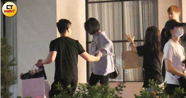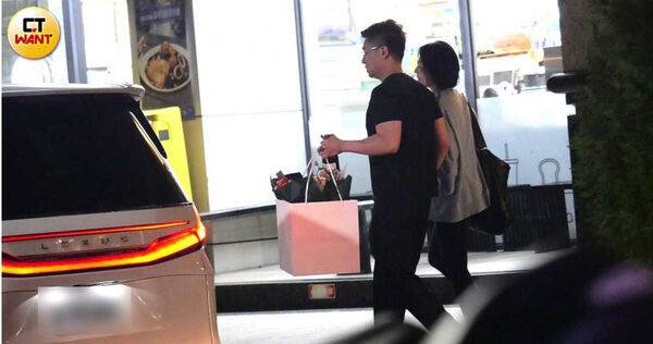 最後,提著一袋花束和紅酒的許雅鈞溫柔地牽著小S的手上車離去。