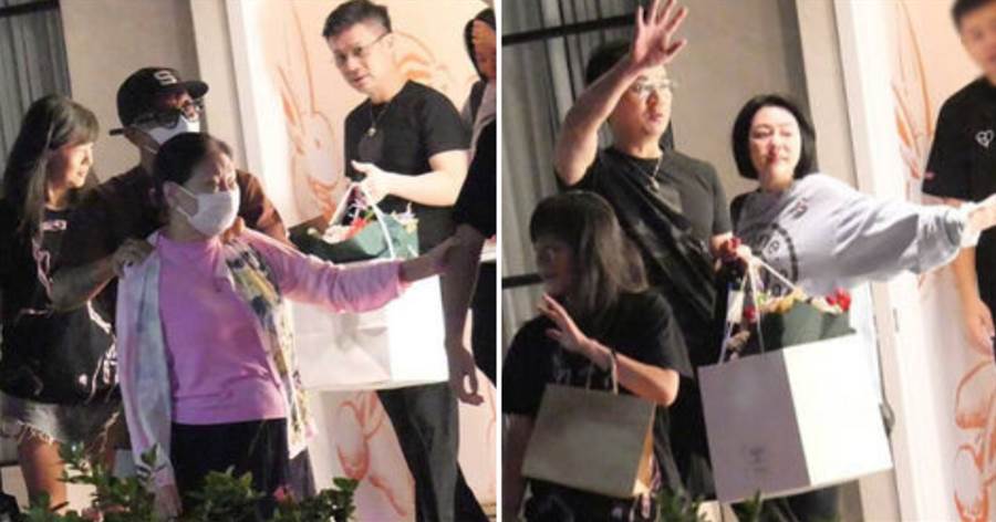 在門口,戴著口罩和帽子遮掩的具俊曄雙手抓著岳母的肩膀,按摩兼打氣,送岳母到路邊搭車。家人們相互揮手道別,小S眼眶仍然泛紅、略顯疲累感,顯然這晚的聚餐一家人仍免不了懷念大S。