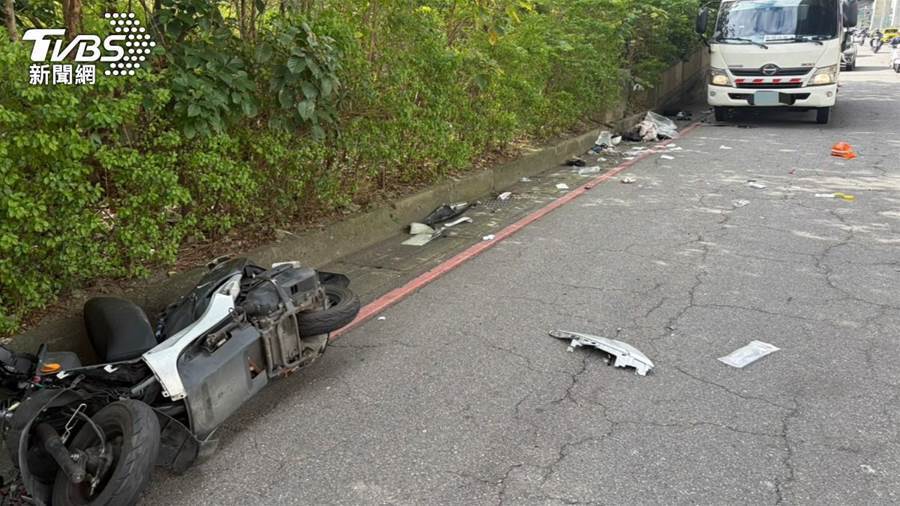 一輛環保局公務車(清潔車)停靠于路邊,車後方有一輛機車嚴重毀損,零件散落一地。現場除了車輛損壞,更有三人倒地受傷,其中機車騎士情況最為危急。