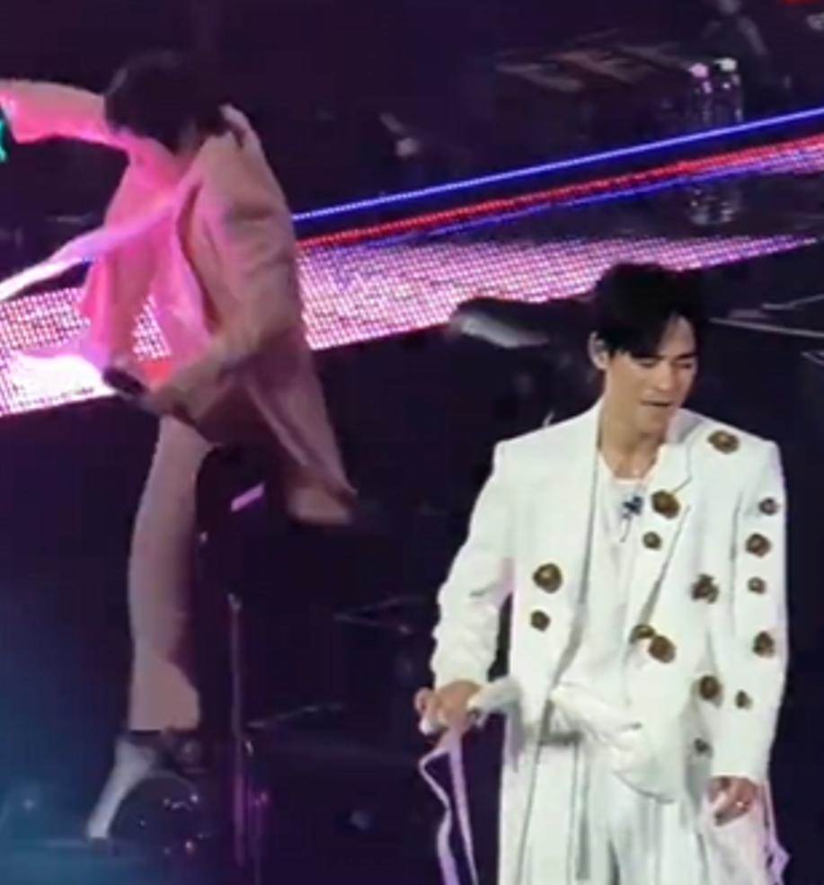他從演唱會「崎嶇不平」的舞臺上摔了下去,現場瞬間慌亂無比,場下有很多觀眾都失聲尖叫,生怕他出現什麼意外。