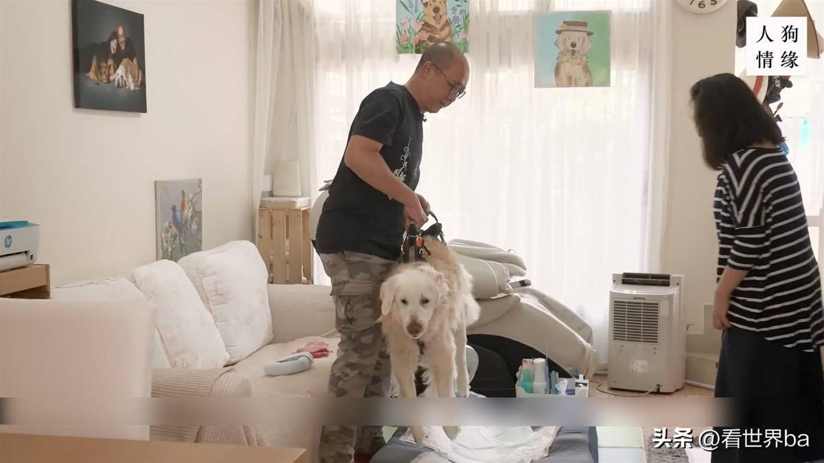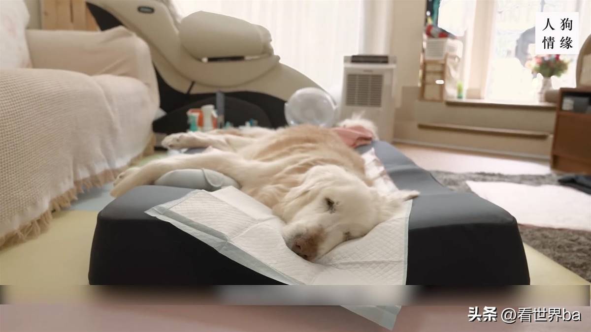 为了让狗狗能舒服地走完最后一程,夫妻俩和保姆三人,每天睡在客厅沙发上,24小时轮流照顾它。