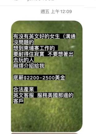 近來柬埔寨詐騙案猖獗,甚至從一開始的騙錢,到現在進化成人蛇集團,誇張的行徑讓很多人,提到柬埔寨都有點怕怕的,不過曾多次在節目《國光幫幫忙》曝光的「國光女神」黃巧綸,卻被發現在個人社群賬號中發文,徵求女生到柬埔寨工作,更打包票「可以住在金邊的別墅、包吃住、有打掃阿姨、底薪至少6、7萬元」,引發不少爭論,雖然文章最後被刪掉,但是也有人留存下來,如今引發議論,她的家人也被起底了。