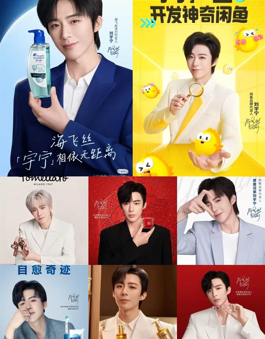 自從劉宇寧爆紅后,找他合作的品牌越來越多,近兩年時間,代言品牌有國民與高奢的「雙線制霸」的深度合作:高奢領域有開雲集團寶曼蘭朵、海飛絲、歐萊雅、蒙牛純甄、閑魚首位品牌代言人,看中其「活人經濟」效應,海飛絲時隔5年再度合作,代言人身份升級為「活力代言人。