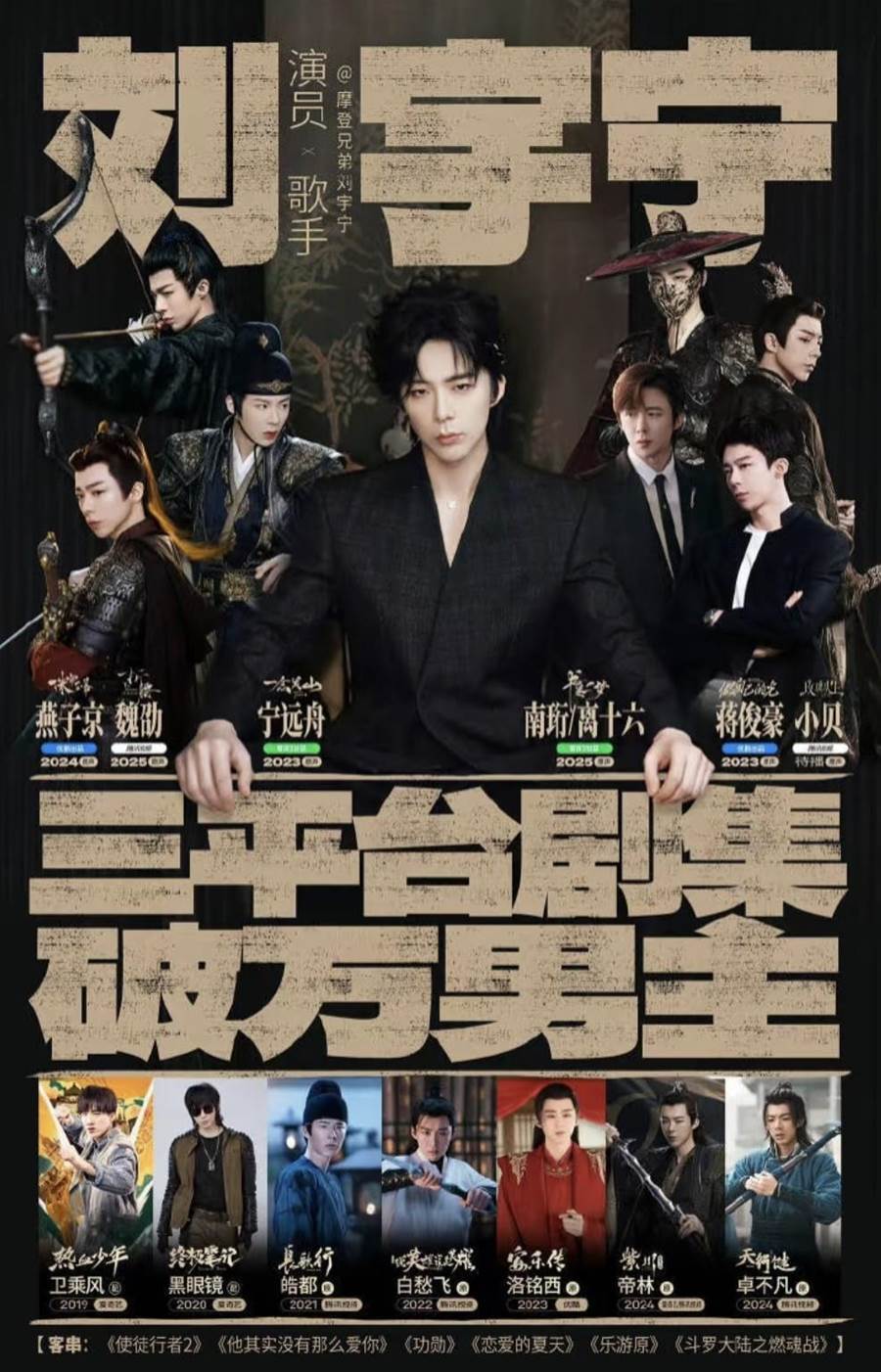 劉宇寧以「多維發展」的硬實力,他演唱《長歌行》《蒼蘭訣》《蓮花樓》等爆款劇主題曲長期霸榜。他「橫跨演戲、OST演唱、直播宣發」被合作方稱為「買一贈三」式服務。
