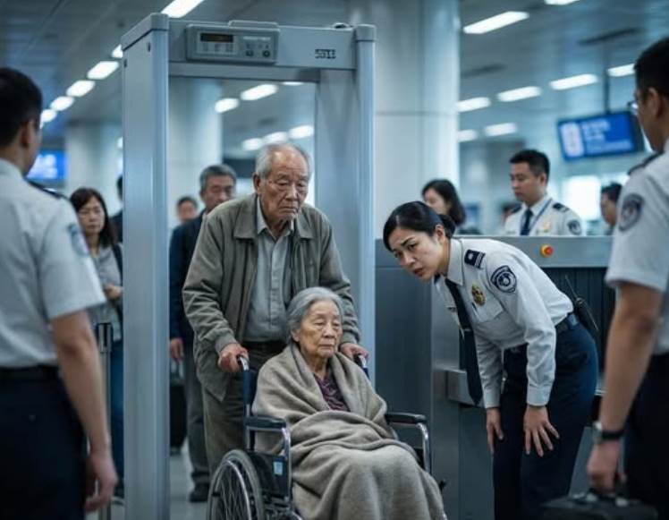 當時這名老先生推著妻子進行通關檢查,然而安檢人員敏銳地發現,該名婦人在經過金屬探測門時神情呆滯、毫無反應,且姿勢極不自然,隨即引起相關人員的懷疑。