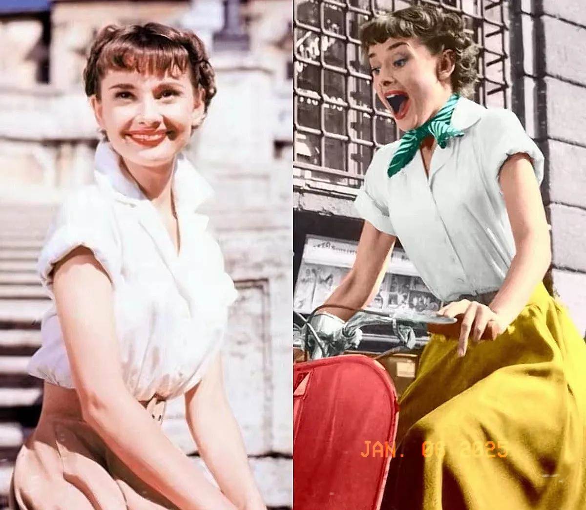 年轻时的奥黛丽真的是一代传奇,她的五官很精致,感觉就像一幅画一样